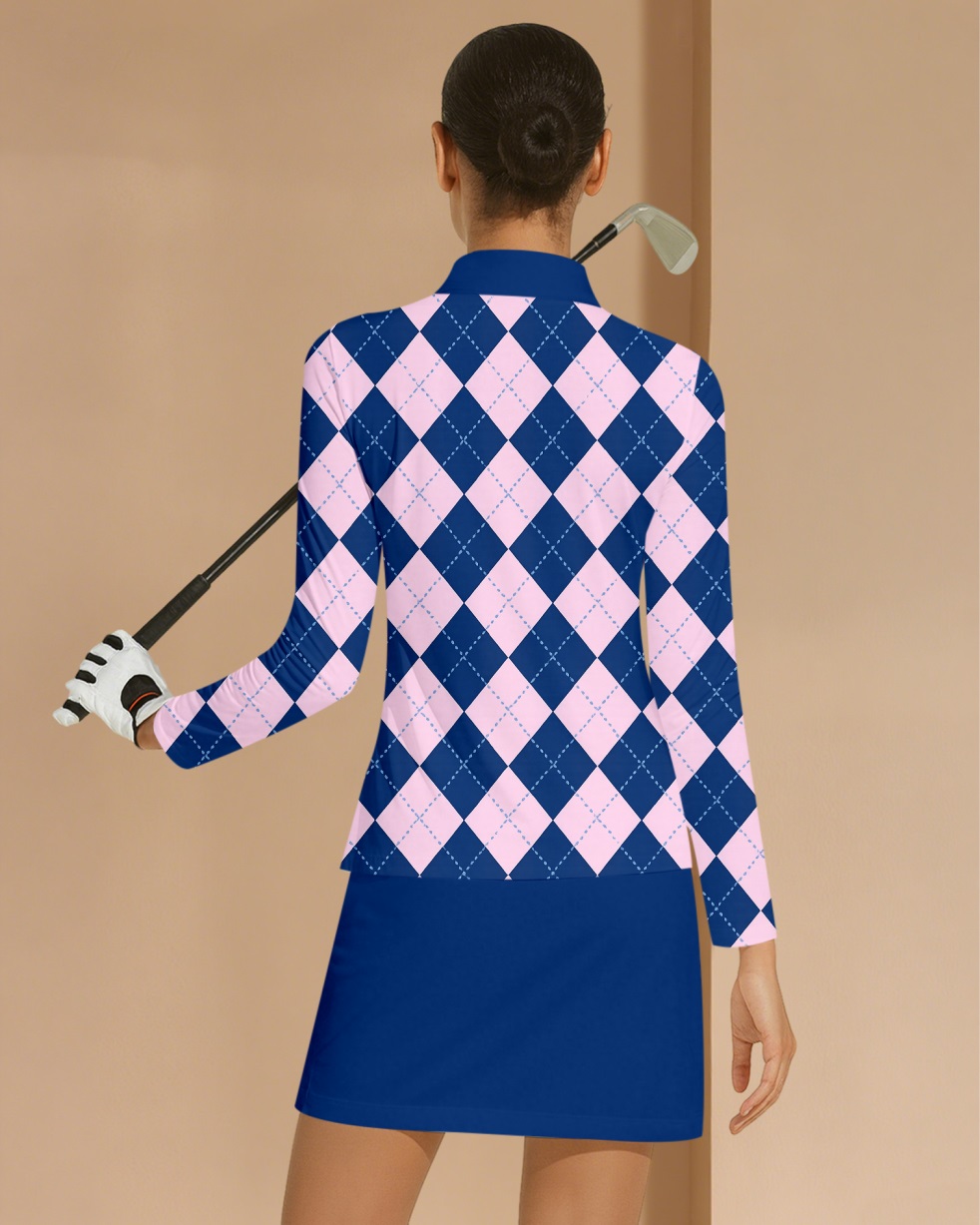 Fungolfs Stylish Long Sleeve Zip-Up, Short Outer Skirt Two-Piece Set Perfect For Golf, Pickleball, And Tennis