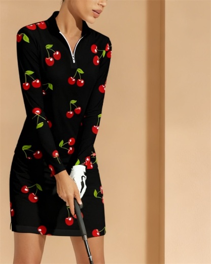 Fungolfs Stylish Long Sleeve Zip-Up, Short Outer Skirt Two-Piece Set Perfect For Golf, Pickleball, And Tennis