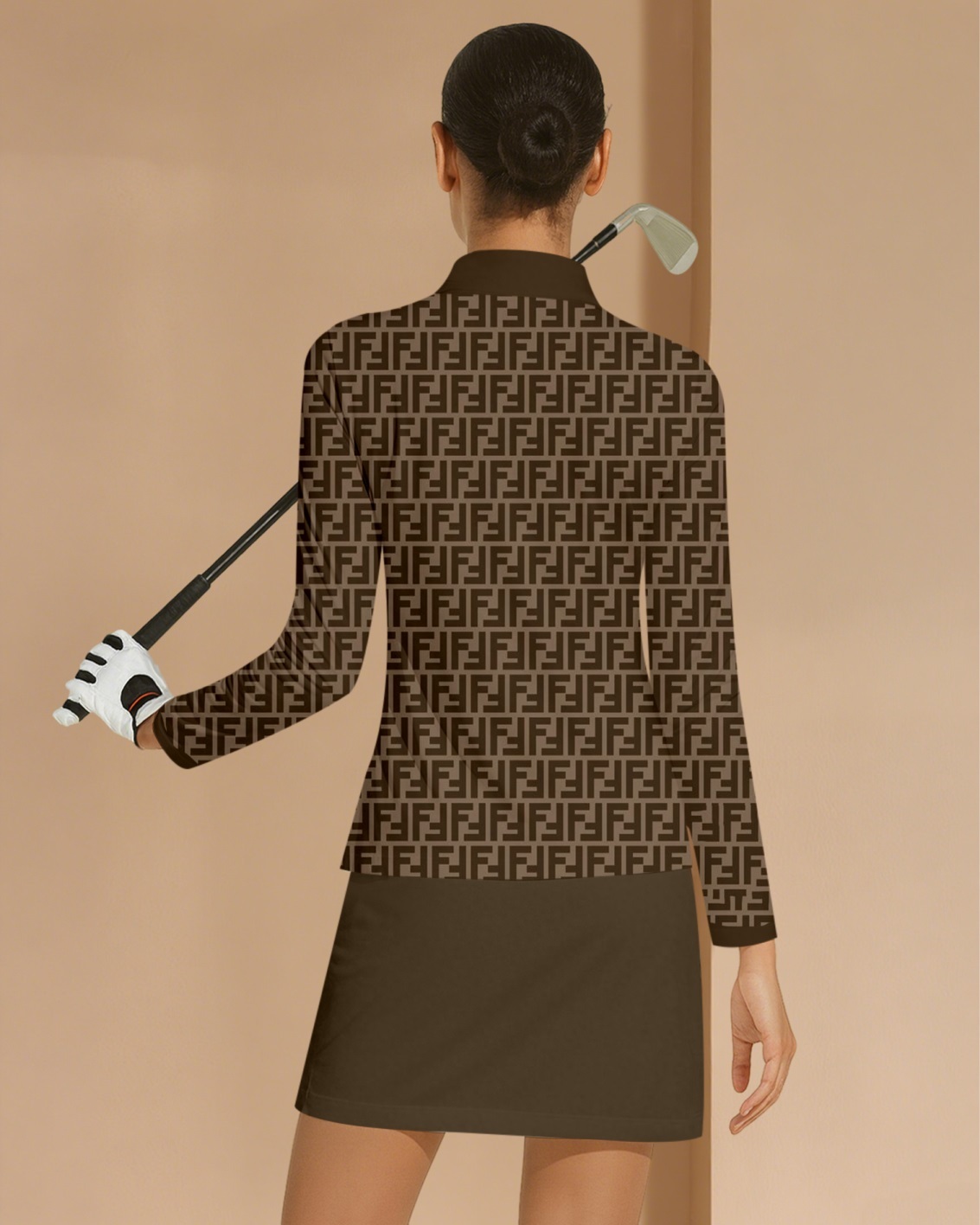Fungolfs Stylish Long Sleeve Zip-Up, Short Outer Skirt Two-Piece Set Perfect For Golf, Pickleball, And Tennis