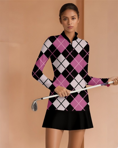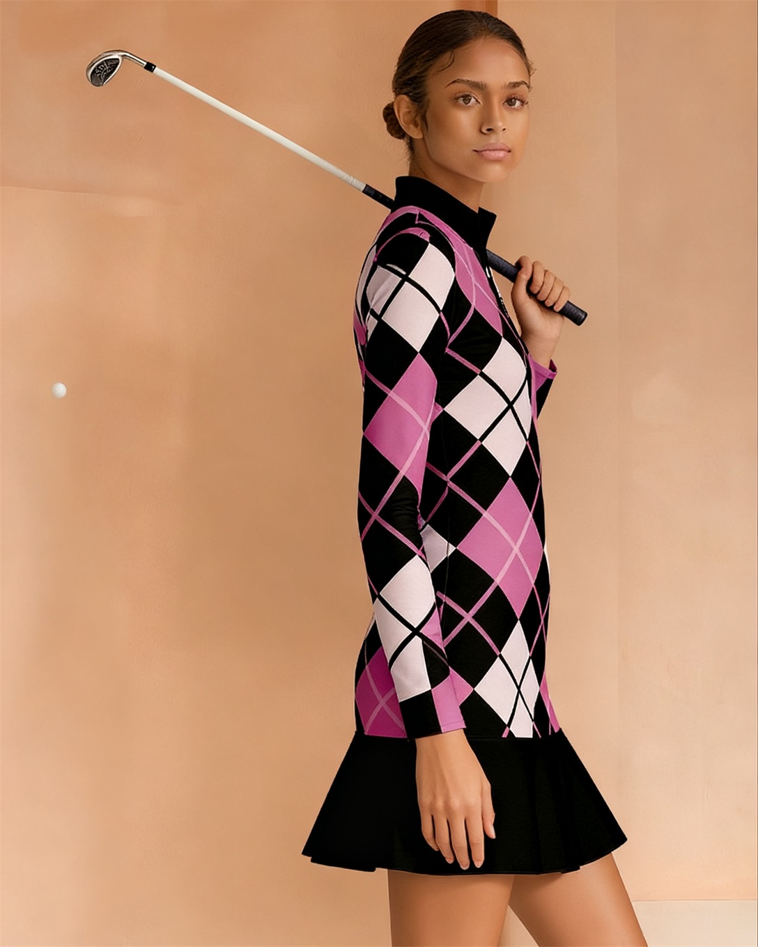Fungolfs Super Stylish Ruffled Zip-Up Long Sleeve Dress Perfect For Golf, Pickleball And Tennis