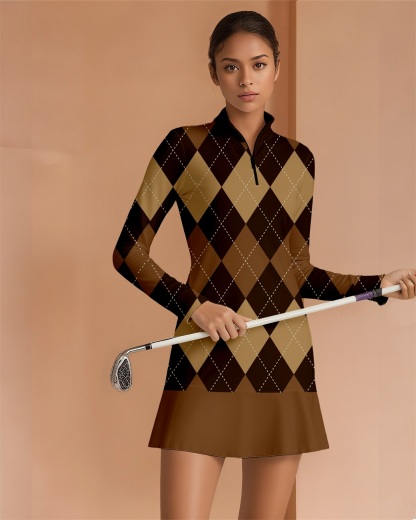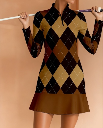 Fungolfs Super Stylish Ruffled Zip-Up Long Sleeve Dress Perfect For Golf, Pickleball And Tennis