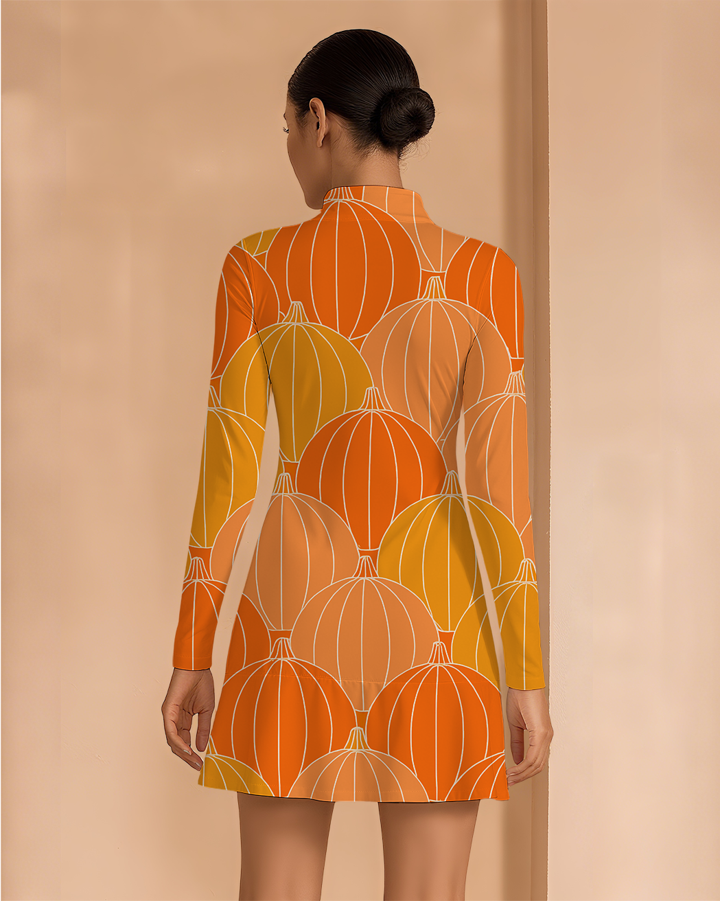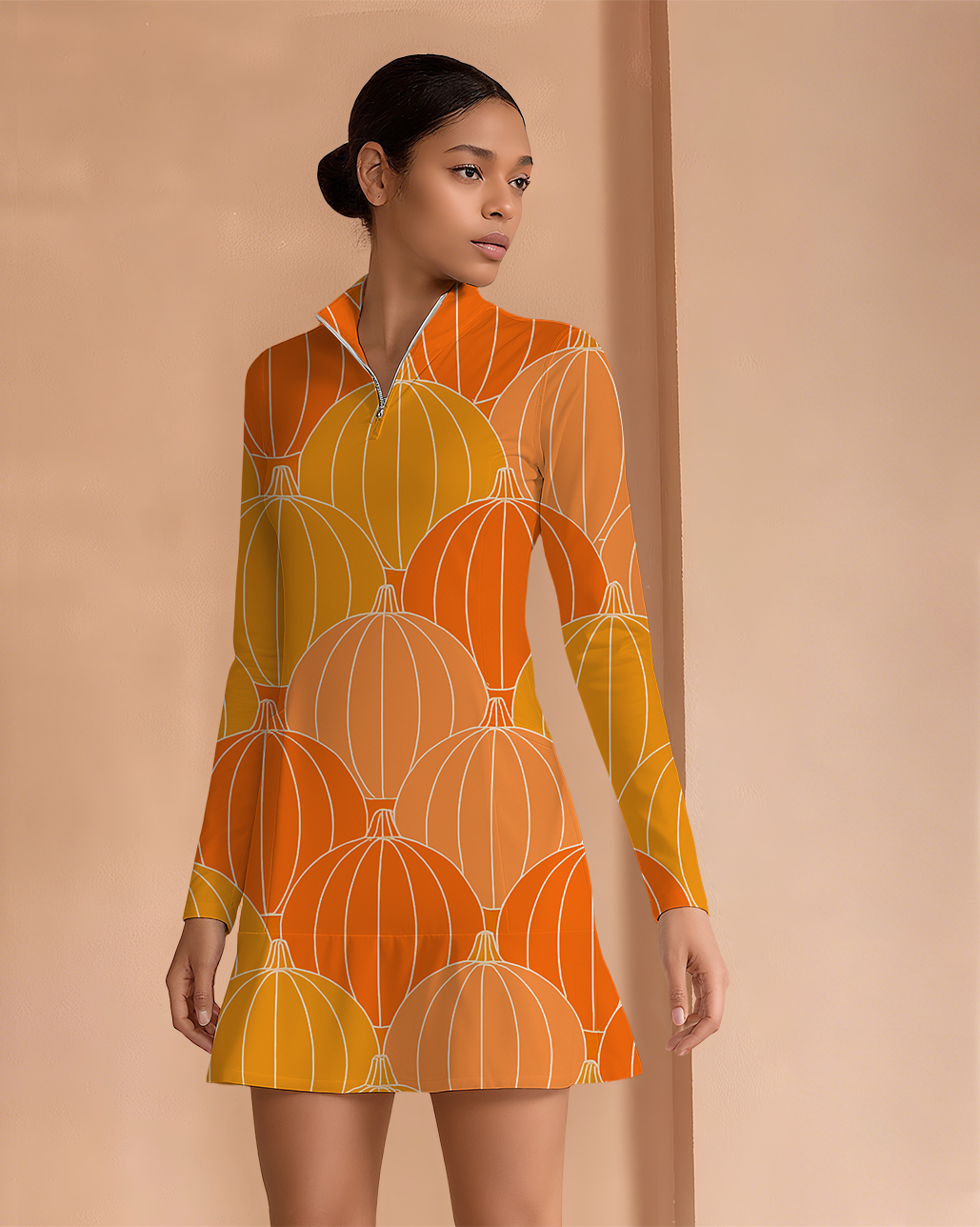 Halloween Stylish And Elegant Golf Long-Sleeved Dress With Pockets