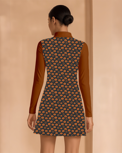 Halloween Stylish And Elegant Golf Long-Sleeved Dress With Pockets
