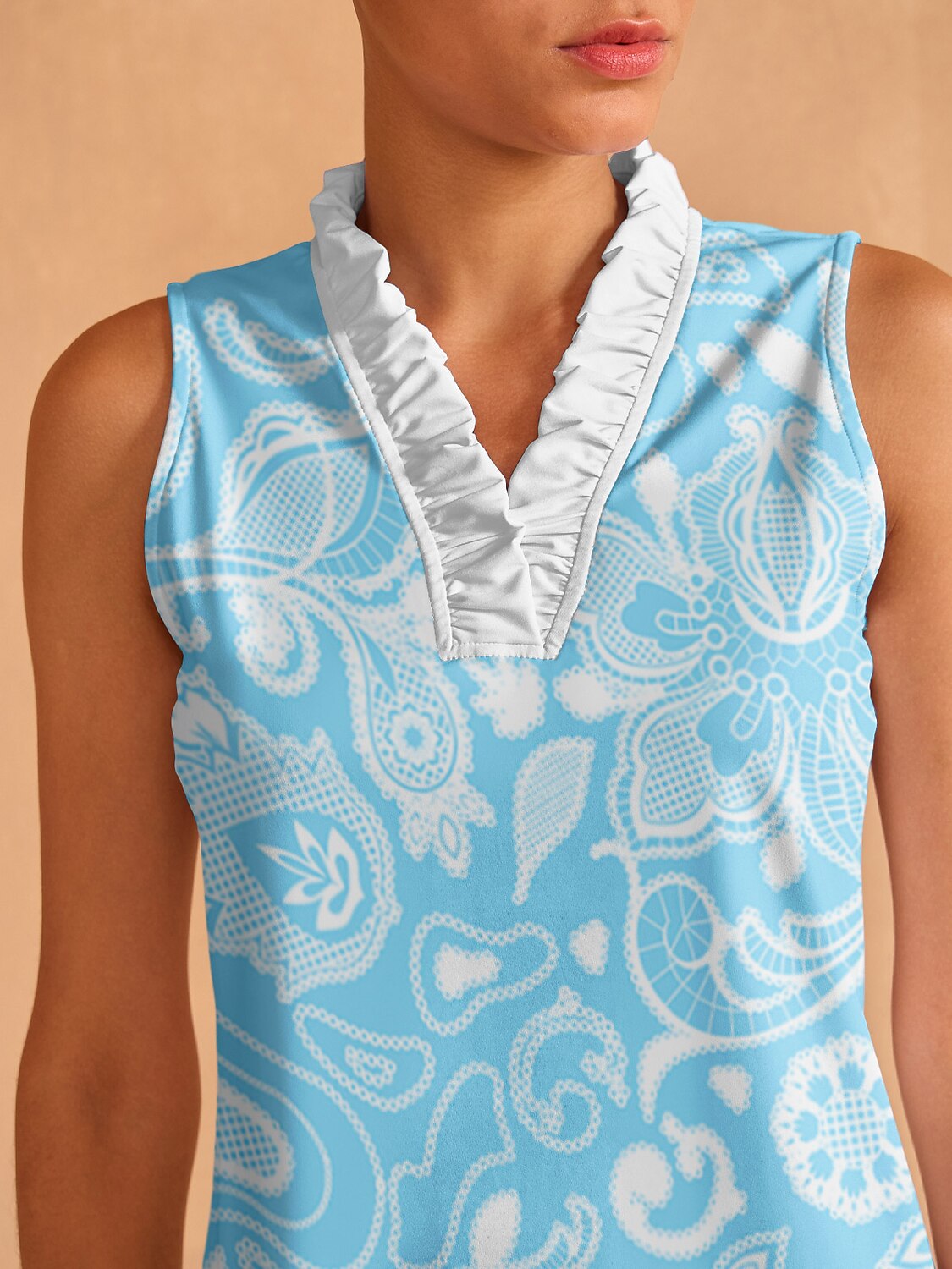 Fungolfs Pretty Feminine Ruffle V-Neck Tank Top UPF50+