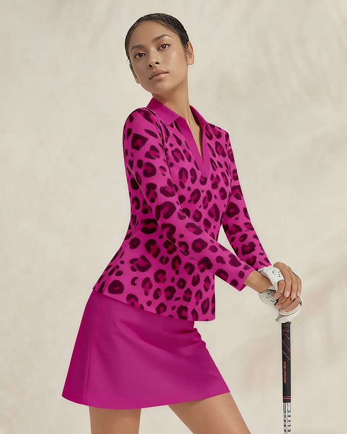 Sports golf running tennis breathable and comfortable lapel V-neck long-sleeved top skirt suit