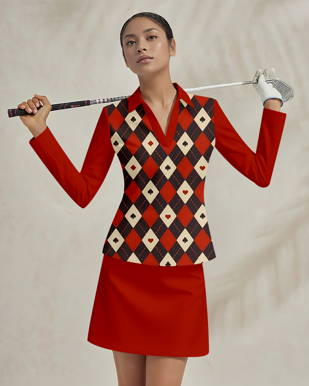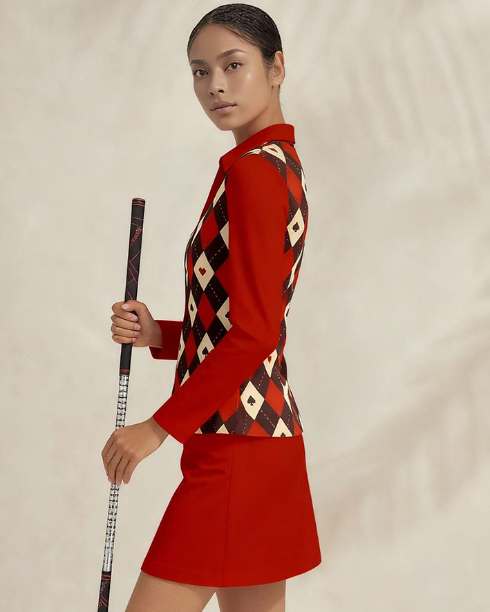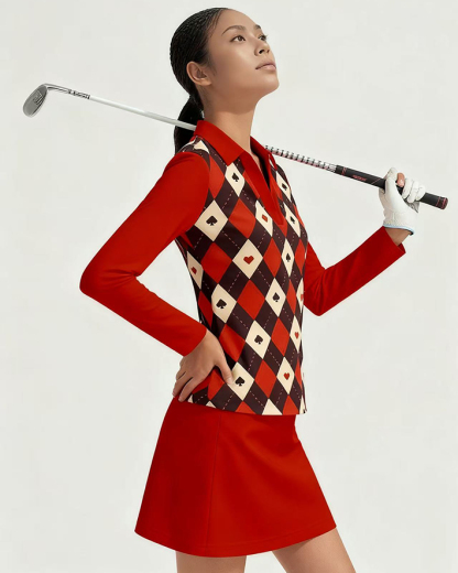 Sports golf running tennis breathable and comfortable lapel V-neck long-sleeved top skirt suit