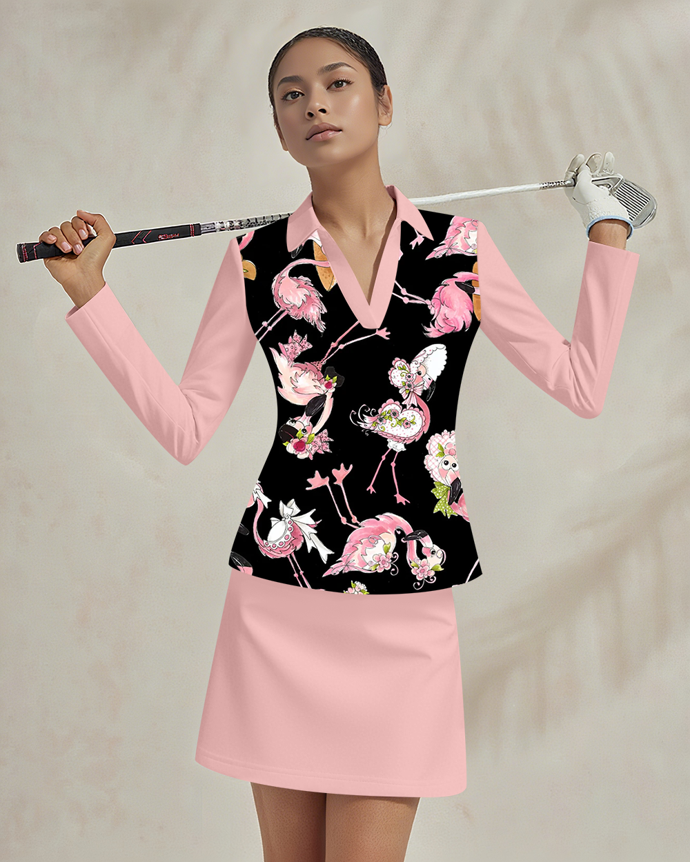 Sports golf running tennis breathable and comfortable lapel V-neck long-sleeved top skirt suit