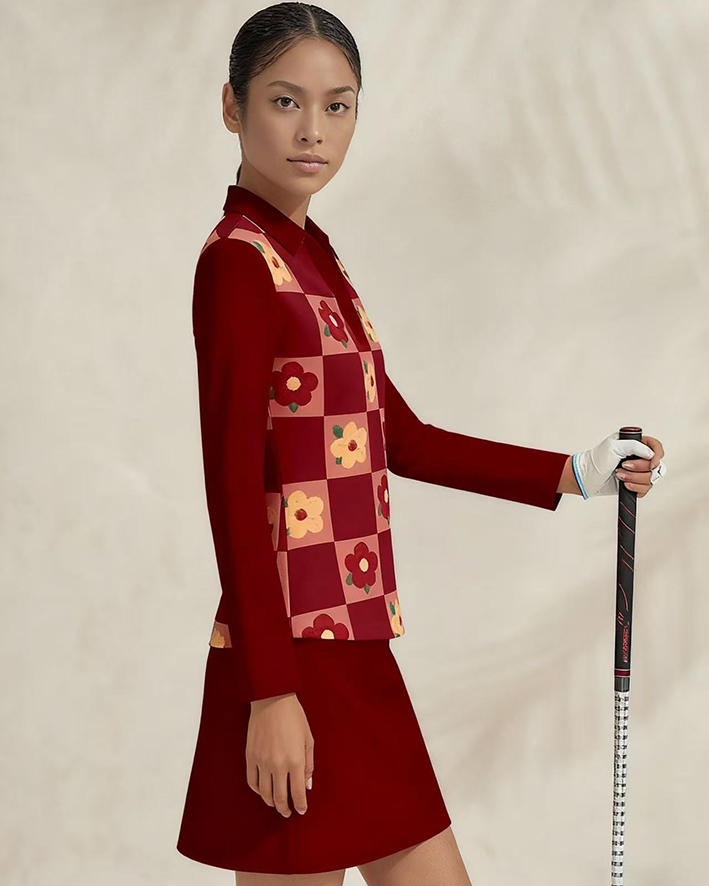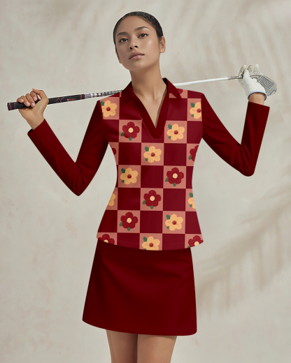 Sports golf running tennis breathable and comfortable lapel V-neck long-sleeved top skirt suit