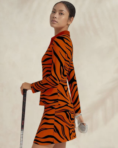 Sports golf running tennis breathable and comfortable lapel V-neck long-sleeved top skirt suit