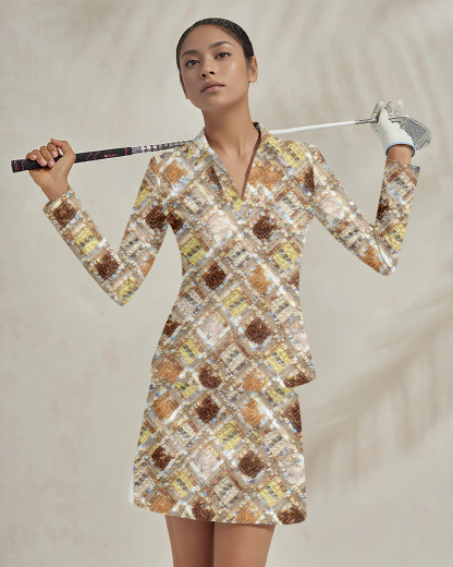 Sports golf running tennis breathable and comfortable lapel V-neck long-sleeved top skirt suit