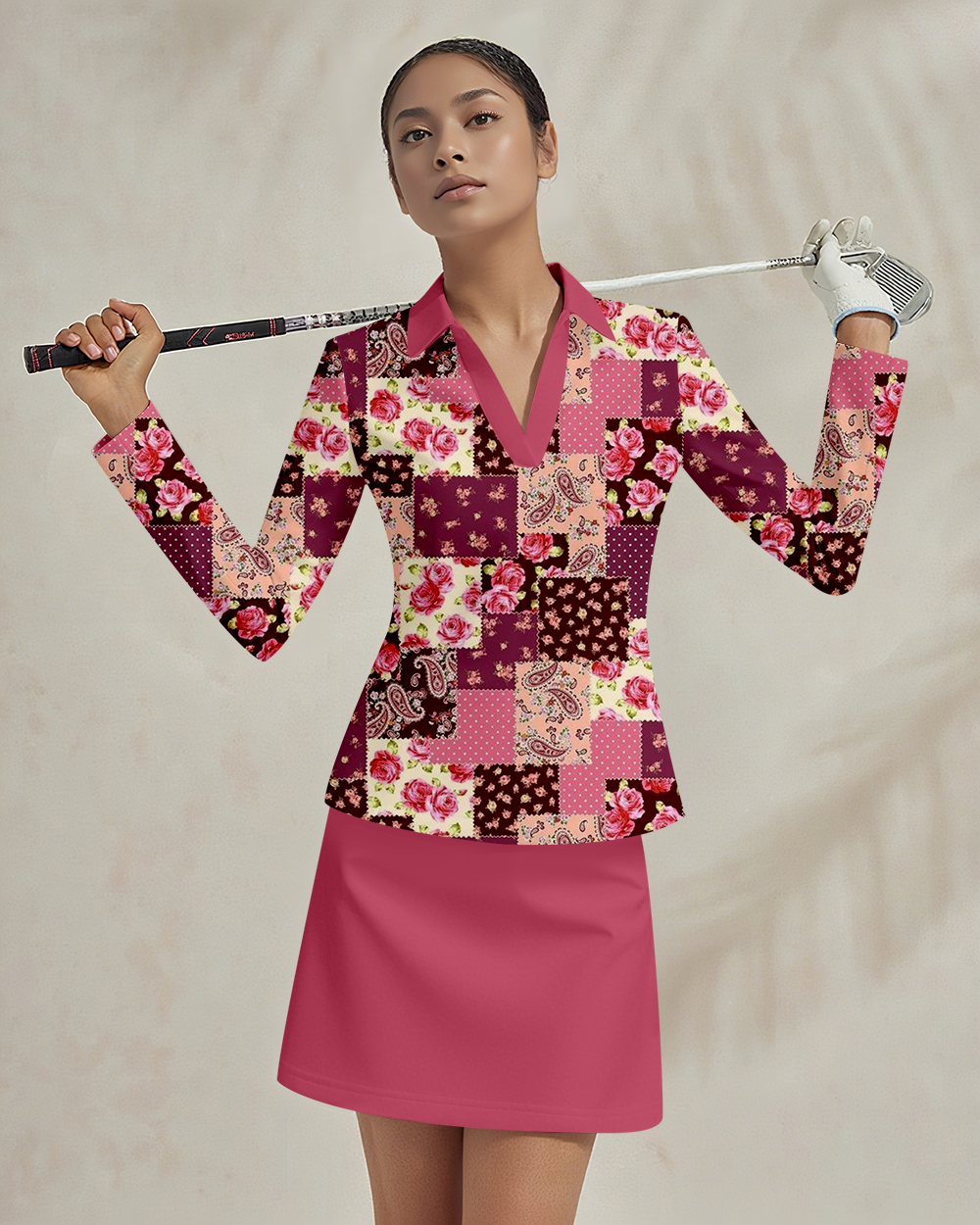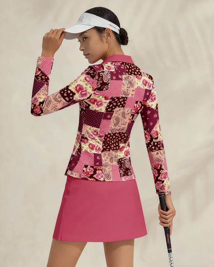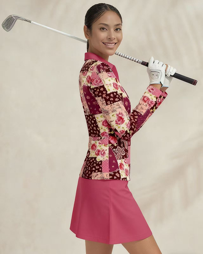 Sports golf running tennis breathable and comfortable lapel V-neck long-sleeved top skirt suit