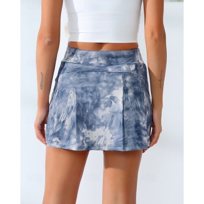 US Open Women's Tie Dye Tennis Skirts with Shorts Print Quick Dry Tennis Golf Badminton Skort Blue Tennis Clothing